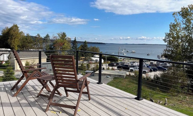 This cozy studio features a Murphy bed, full bath, and well-equipped kitchenette with a stovetop, fridge, toaster, and microwave. Enjoy beautiful Penobscot Bay views and stunning Maine sunrises right from the deck—blinds are provided when you need shade or a nap.