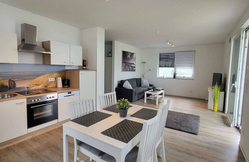 Exclusive ‘Hafenkante’ holiday flat for two guests with king-size bed, modern kitchen, WiFi, TV and spacious terrace - perfect for a relaxing break!