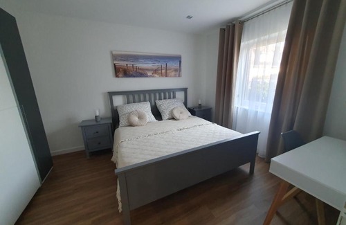 - Traumhafte Ferienwohnung am Park, großer Balkon, voll ausgestattete Küche, Schreibtisch, WiFi, Smart TV, Carport, Wallbox, Fahrräder