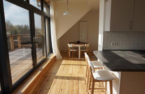 A recently renovated apartment, FeWo OG am Fluss mit Balkon - ein himmlischer Ausblick offers accommodations in Schiffmühle. Both free Wifi and parking on-site are accessible at the apartment free of charge. Featuring a balcony and river views, the spacious apartment includes 2 bedrooms, a living room, satellite flat-screen TV, an equipped kitchen, and 1 bathroom with a walk-in shower and a bath. Towels and bed linen are available in the apartment. The property has an outdoor dining area. Guests at FeWo OG am Fluss mit Balkon - ein himmlischer Ausblick will be able to enjoy activities in and around Schiffmühle, like cycling and hiking. Guests can relax in the garden at the property. Chorin Abbey is 18 miles from the accommodation, while Stadthalle Bernau is 25 miles from the property. Berlin Brandenburg Willy Brandt Airport is 58 miles away.
