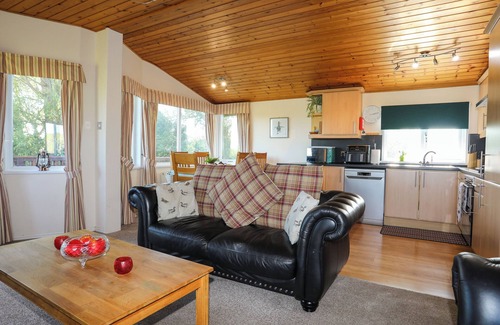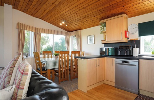Rhosneigr 1.8 miles. Ffrwd Lodge is a detached wooden lodge, surrounded by rolling countryside, in a secluded location on the outskirts of Rhosneigr on the Isle of Anglesey. This all-ground-floor lodge has a wrap-around balcony, so you can enjoy panoramic views of the countryside it is ideal for a family wanting to explore the Isle of Anglesey, within easy reach of the coast and picturesque beaches. Inside the property, you will discover an open-plan living room with a well-equipped kitchen, large dining table that can seat the whole group and a cosy seating area with electric fire and Smart TV, where you can enjoy all of your favourite Netflix shows. Th eproperty offers three bedrooms; a master double with its own en-suite, a twin and a child's bunk room, served by a family bathroom with a shower over bath. Outside, there is ample off-road parking on the driveway and the garden has a lawned area and patio, with a picnic bench and fire pit, ideal for alfresco dining and the fire pit can keep you warm on a chilly evening. Head into Rhosneigr, less than three miles away, and enjoy a day at one of its fantastic sandy beaches, offering excellent watersports opportunities, equipment hire and surfing lessons. Walkers can join the Anglesey Coastal path and enjoy incredible coastal views, heading towards Trearddur Bay, with its stunning beach of white sand and clear water, towards Holyhead, where you can discover Breakwater Country Park and explore several scenic walking trails and enjoy birdwatching. From Holyhead, you can hop on a ferry for a day trip to Dublin, or drive over to the mainland and explore Bangor, Llandudno and the incredible Snowdonia National Park. Ffrwd Lodge is a wonderful family-friendly base from which to explore the Isle of Anglesey. Note: This property can be booked with Ref. 1049427, together sleeping 10 people.