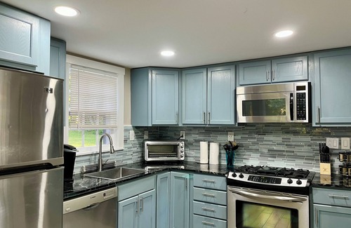 Your stay includes numerous amenities designed for ultimate comfort and enjoyment. Enjoy evenings unwinding in the hot tub or gathering around the fire pit in the expansive backyard. With 5 fully equipped kitchens, 7 beautifully appointed bedrooms featuring flat-screen TVs and air conditioning, and a work space area on the second floor, this accommodation caters to all your needs. Plus, your furry friends are welcome as well, ensuring that no one gets left behind on your joyous occasion.