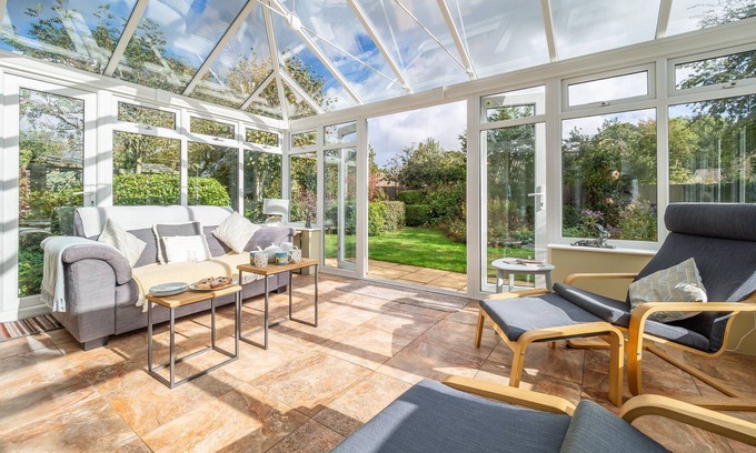 All on the ground floor, the property sleeps up to four guests in two bedrooms and is beautifully presented throughout. There is a well-equipped kitchen complete with double electric oven and dishwasher - ideal for even the messiest of cooks, and at the opposite end there is a dining area for four guests overlooking the conservatory. Guests also have access to the garage where they will find a freezer, washing machine and tumble dryer. Beyond the kitchen is the light-filled conservatory with comfy seating and glorious views of the pretty garden. The cosy sitting room is perfect for a relaxing night in with a glass of your favourite tipple and movie in front of the roaring fire. The master bedroom has a 4'6 double bed and benefits from an en-suite shower room. There is a further bedroom with 5' king-size bed which can be configured as twin 2'6 single beds on request, as well as a family bathroom with separate WC for convenience.