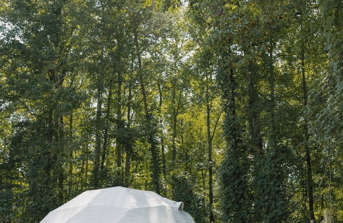Field Trip is a unique, 23-unit Glampground in Travelers Rest, SC. All of our units have access to our Lodge, bathrooms, and extensive amenities. Unit 16 is a spacious Geo Dome tucked back in the woods, perfect for two people. Features a queen sized bed with an option for an additional twin cot for a max capacity of 3 ppl. Heat & AC, luxury bedding, coffee maker, seating area, private outdoor fire pit.