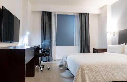 Fiesta Inn Tepic is in Tepic’s Plaza Forum, 10 minutes’ drive from the city center. A free airport shuttle is offered, and the hotel has a gym, free Wi-Fi and free parking. Modern, air-conditioned rooms feature carpeted floors and flat-screen cable TV. Each has a work desk and a coffee maker. The private bathroom comes with a hairdryer and amenities. The hotel’s Café La Fiesta is open from 06:00 to 23:00 daily and offers international cuisine and Mexican appetizers. There is a bar and room service is available. Fiesta Inn has a 24-hour reception and concierge service. Luggage storage and a laundry service are offered. Tepic Airport is 6.2 mi away and the hotel is 5 minutes’ drive from Tepic’s business parks.