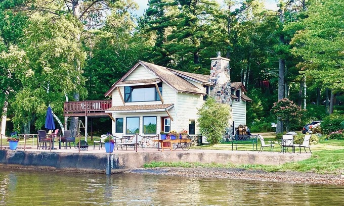 The Lounge is a one-of-a-kind, historic cabin right on Trout Lake. The Lounge is a 2-story recently remodeled cabin perfect for a romantic get-away or a restful vacation. Loons, eagles, and deer can frequently be seen near the property. The Lounge has an open concept with a full kitchen, living room space, and dining space all with a view of Trout Lake. Downstairs is a large bedroom containing a Queen Bed and a daybed with pullout trundle bed, both with memory foam mattresses. In addition, there is a bathroom downstairs with a shower and full tub. Upstairs has an additional daybed with pullout trundle as well. The cabin is located about 10 feet from the northern shore of Trout Lake. We have kayaks, canoes, and a paddleboat on site for our guests to use.