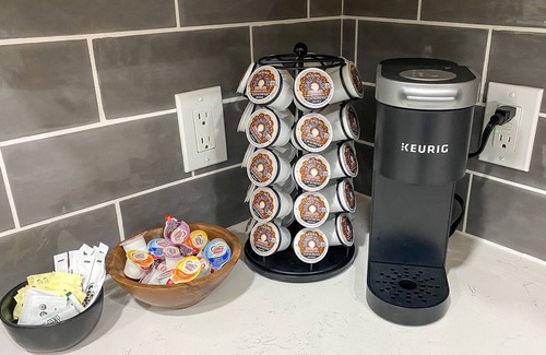 Starting with an easy to use kitchen that includes a full size fridge with water dispenser and ice maker, stove & oven, dishwasher, microwave, and Keurig (coffee included). We offer plenty of utensils and cookware so you can cook your favorite meals during your stay. Dinner is served with a simple, but elegant dinner table (8) and a bar with (3) barstools.
