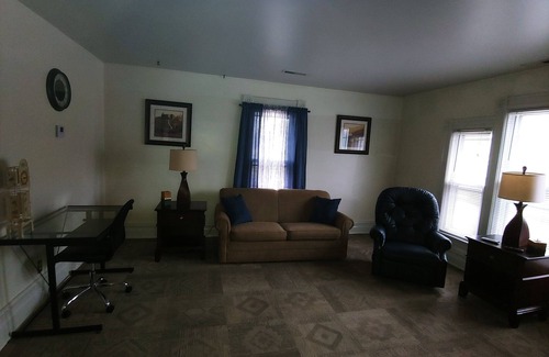 Enjoy your visit to Owosso in your own space at Fins Inn. This is a fully furnished apartment that offers a bedroom with a queen bed and a pull out couch. A washer and dryer is available for guest use. Conveniently located close to downtown Owosso and Memorial Healthcare.