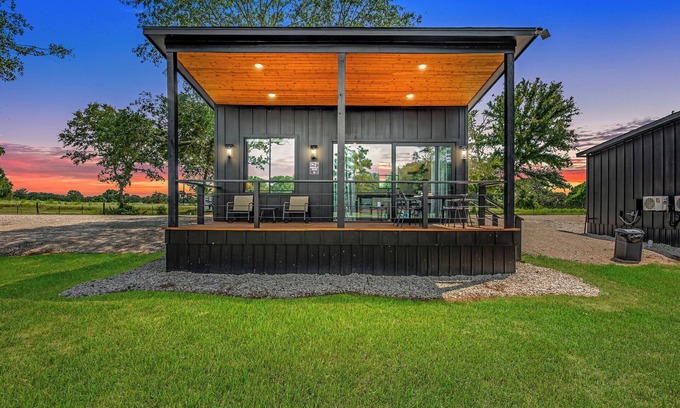Finca Agave Retreat offers 13 luxury tiny homes, each designed with modern farmhouse decor. The 10 acre gated property features a fishing pond, heated swimming pool, individual fire pits, and future addition of Pygmy goats and barndominium. The property is a perfect place for family gatherings, business retreats, and weddings. It offers a peaceful rural atmosphere with southern charm, and convenient access to both countryside experiences and urban amenities. Each modern tiny home offers guests a cozy retreat with 1 king bed in the bedroom and a sofa bed in the living room. Make Finca Agave Retreat your next place to unwind and build lasting memories.