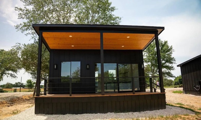 Finca Agave Retreat offers 13 luxury tiny homes, each designed with modern farmhouse decor. The 10 acre gated property features a fishing pond, heated swimming pool, individual fire pits, and future addition of Pygmy goats and barndominium. The property is a perfect place for family gatherings, business retreats, and weddings. It offers a peaceful rural atmosphere with southern charm, and convenient access to both countryside experiences and urban amenities. Each modern tiny home offers guests a cozy retreat with 1 king bed in the bedroom and a sofa bed in the living room. Make Finca Agave Retreat your next place to unwind and build lasting memories.