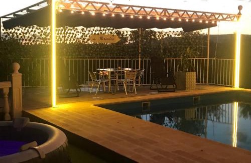 Offering a garden, Finca La Rosalía features accommodations in Setenil. A hot tub and a bicycle rental service are available for guests. The pool features a fence and garden views. Featuring mountain and pool views, this vacation home provides 5 bedrooms and opens to a terrace. The vacation home also offers a TV, a seating area, washing machine, and 1 bathroom with a walk-in shower, a hot tub and a bidet. The property has an outdoor dining area. During warmer months, you can make use of the barbecue facilities and eat on the private balcony. The vacation home has a picnic area where you can spend the day outdoors. Plaza de España is 11 miles from the vacation home, while Iglesia de Santa María la Mayor is 12 miles away. Malaga Airport is 54 miles from the property.