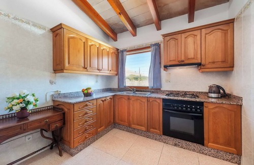 Finca Manresa is a detached house and is ideal for large families or groups. The house has 6 bedrooms spread over two floors. On the ground floor there is a bright dining room. To the right is the well-equipped kitchen with breakfast table and pantry. A hallway leads to the other rooms on this floor: a double bedroom with en-suite bathroom and two twin bedrooms sharing a bathroom.