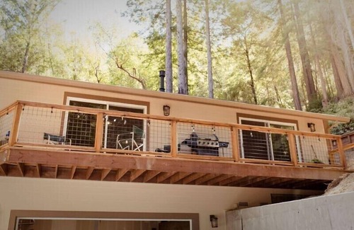 Brand new home built in 2020. Top of the line appliances and fireplace. Has a shared staircase to the main house but private entrance into this home. Enjoy a glass of wine or cup of coffee and see the beautiful views of the Redwoods on your own private deck. Access to the garage with pool table and ping pong table. 20 min drive to hwy 101.