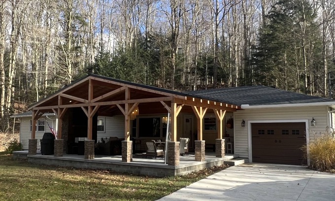 Come and enjoy our lake house with beautiful lake views, (this house is NOT on the lake, but across the street. It does NOT have lake access or a dock.) Lots of property to enjoy and privacy in a wooded setting. Plenty of room in the driveway to park your boat so you can launch it at the Marina. Newly renovated, beautifully decorated and comfortable for you to relax and unwind. Fully stocked kitchen with all the comforts of home. This house is great for couples, families or groups wanting to enjoy the beauty of Findley Lake, NY. We have a fire ring in the backyard, fire pit in backyard and a double sided gas fireplace on the front porch for all to enjoy. Bring your own firewood. 2 kayaks to use. Just bring your life jackets! Just off the Chautauqua Snowmobiling trail, this home is truly in a great location to enjoy all four seasons. Within 5 miles of Peek ‘N Peak Resort and 15 minutes from the Lake Erie Wine Trail, this is the perfect rental for your next family get away!!
