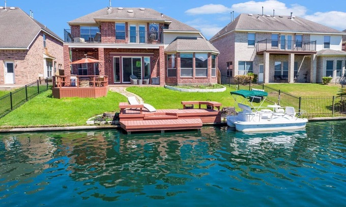 Resort-Style perfectly fully furnished Experience Luxury Vacation HOME w/SPACIOUS LIVING, MANY UPGRADES & UPDATES At Its Finest IMMACULATE exquisite stone/brick Home in CUL-DE-SAC, NO carpet, overlooks PANORAMIC WATERFRONT PRIVATE LAKE SHORE HARBOUR W/stylish design help you unplug, Sophisticated vibe & ample seating 2mingle & entertain,supplying U W/every amenity needed 4a tranquil vacation, plenty of rooms 2enjoy precious time w/Ur family & friends, M. Bed&2nd Bed&bath & office/5th Bed down,3rd&4th Bed Up W/3rd full bath down, relax in Living room w/Romantic 'DIRECT VENT'GAS LOG F/P w/Remote, ALL PAID BILLS W/HiSp Wi-Fi, modern BIG kitchen w/island w/granite top & breakfast bar, ALL stainless appliances, in home full size 2washer & dryer, charming PATIO w/outdoor kitchen, fishing or take Ur boat4relaxing ride around the lake from Ur DOCK! available 4RENT from 1-1,000 night, can accommodate up to 10 adult, Excellent schools & tons of shopping & dining nearby! Don't wait! GET IT TODAY!