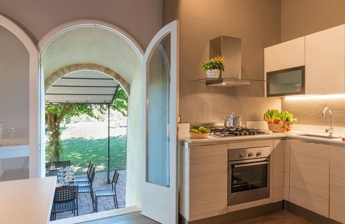 The 2000 sq m park surrounding the villa is covered mainly in lawn and bordered along the perimeter by a mixed-hedge screen. From the entrance gate to the property, a short drive passes in front of the main entrance, where you can unload your luggage, and then leads to a private 6-car parking area. The pergola furnished with table and chairs is just outside the kitchen French window and next to the pool.Please notice that photos are taken in spring, therefore flower blossoming, and the colours of the gardens' grass could be different at the moment of your arrival at the villa.
