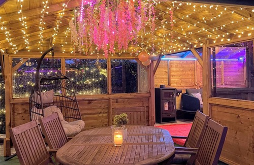 ✅ Covered outdoor lounge/gazebo with fairy lights, dining area & private gas BBQ