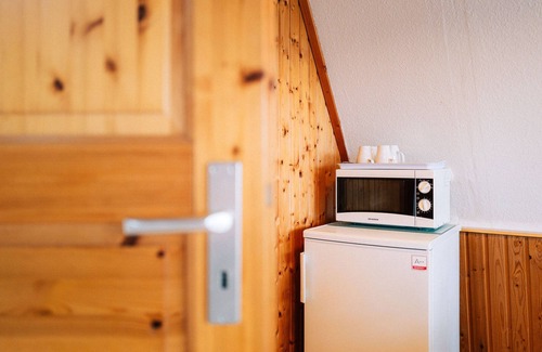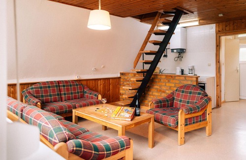 Living room with TV, open kitchen with coffee machine, kettle, toaster, microwave, stove with oven, shower / WC, steep space-saving staircase to the two bedrooms, terrace, bed linen included. Maximum occupancy 4 + 1 extra bed 15 € per night. NO SMOKING - NO PET IMPORTANT: please inform us that you have received your booking documents. Gladly by e-mail. Please bring towels!
