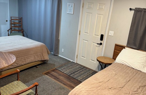 Spacious room with 2 full beds, includes, microwave, coffee maker, mini fridge, tv, private bath with shower, free internet