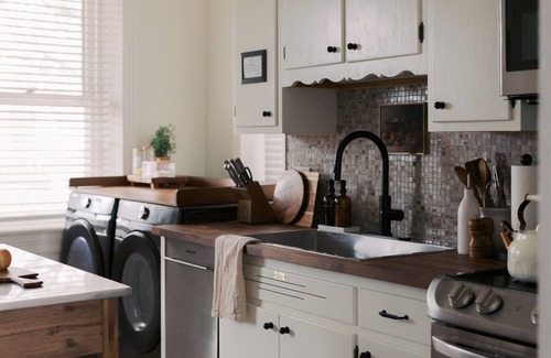 - In-unit washer and dryer with laundry detergent