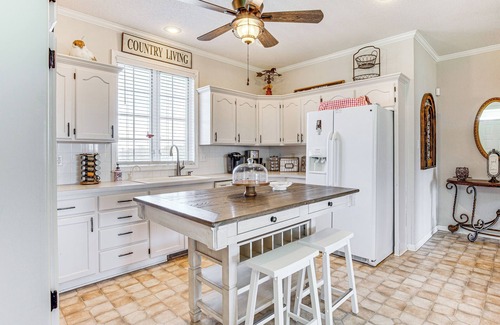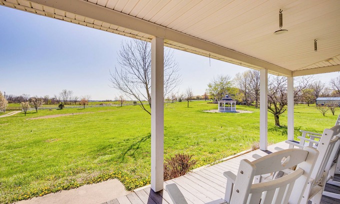 Escape the hustle and bustle of everyday life when you stay at this inviting vacation rental in Warrensburg's peaceful countryside. Start your mornings sipping coffee on the expansive porch while gazing at the surrounding lush fields. After exploring Cave Hollow Park, unwind with a relaxing soak in the jetted tub or watch a movie. This 3-bedroom, 3.5-bathroom home also boasts a fire pit, perfect for stargazing with loved ones!