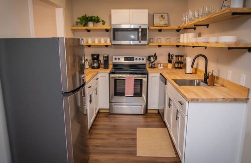 - Modern Amenities: The fully stocked kitchen allows for easy meal prep, while fast WiFi keeps everyone connected. Unwind with cozy movie nights on one of the two smart TVs after your wedding festivities.
