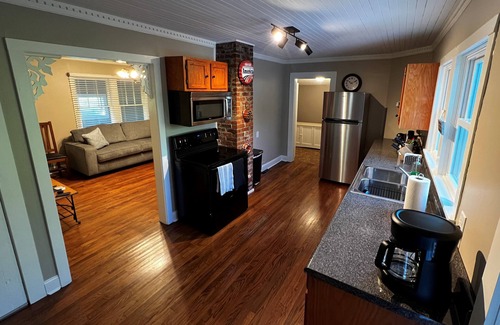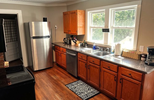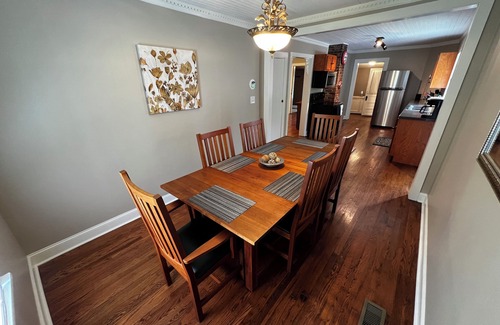 This charming two-bedroom, two-bath home comes fully equipped to cater to all your needs. Enjoy modern conveniences including fast and reliable internet, a spacious office/work station for any last-minute planning, and a large backyard featuring a fire pit—ideal for gathering around with loved ones. For couples who wish to bring their furry family members, up to two house-trained pets are welcome, making sure no one gets left behind on your big day. Additionally, farm-fresh eggs can be requested, adding a delightful local touch to your stay.
