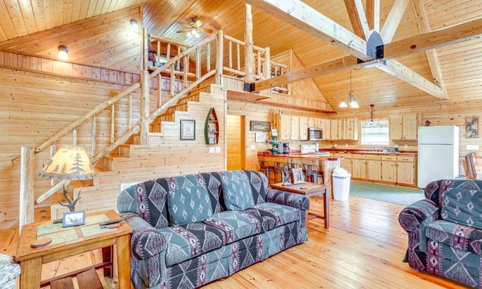 Both parking on-site and free Wifi are available at Fire Pit, Screened Deck Riverfront Ozarks Cabin!. The air-conditioned vacation home consists of 2 bedrooms, a living room, a fully equipped kitchen with an oven and a coffee machine, and 2 bathrooms with a bath and free toiletries. Towels and bed linen are featured in the vacation home. The property has an outdoor dining area. Boone County Airport is 102 miles away.