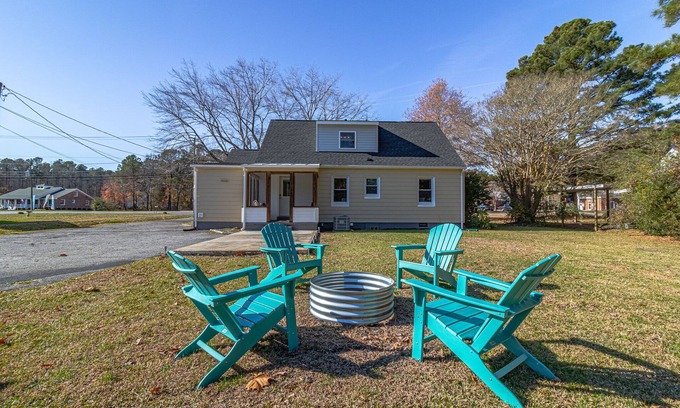 Fire Pit🔥 Walk to Town. 1st floor King Bed & Walk in Shower! Monthly Discounts! | House in Mathews