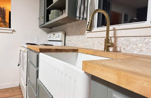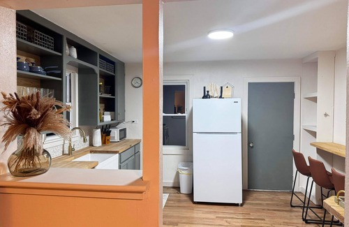 Kick back and relax in this calm, stylish cottage. It is situated on a small hill, right in town. It is close to Mammoth Spring State Park, Spring River, and area restaurants. But it also has a secluded feel due to the tall privacy fence and shrubbery. Enjoy a cup of coffee on the split level front porch or bask in ambient warmth of the fire pit in the backyard. This cottage is well appointed with memory foam mattress toppers, smart TVs in both bedrooms and the living room & a coffee bar with full size coffee maker and free coffee. The kitchen is well stocked with pots, pans, cooking essentials, a microwave, toaster, wine opener, and dishware. The house also comes with a full size washer and dryer (electric). Pets and Events are allowed are a per case basis. Message for more information on that.