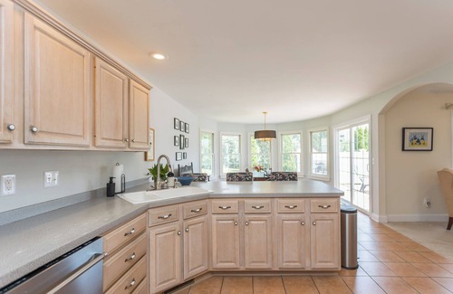 •Fully Equipped Kitchen - everything you need to prepare your favorite meals. Plenty of counter space, pots, pans, baking and serving dishes, etc. to host a special occasion feast! The open floor plan adjoins to the dining space and deck areas so those cooking don’t have to miss a moment!