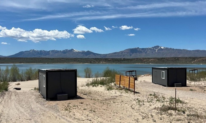 Escape to 2 beautifully furnished mirror pods perched on the pristine sandy beach of Yuba Lake, where turquoise waters meet endless outdoor adventures. This unique glamping experience blends retro charm with modern comfort, offering a front-row seat to breathtaking lake views, vibrant sunsets, and some of Utah’s darkest skies—perfect for stargazing under a canopy of stars. Whether you’re paddling across the lake, roasting s’mores by a campfire, or simply soaking in the serene beauty, these pods are your ideal base for an unforgettable getaway. Nestled at the water’s edge, it’s a haven for relaxation and exploration in the heart of Utah’s natural splendor.