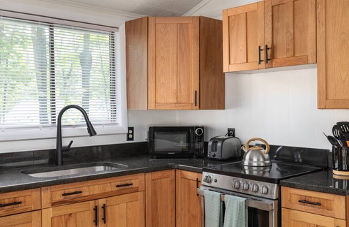Enjoy some quiet relaxation at our stylish and peaceful cottage! This charming retreat is the perfect escape. Curl up with a good book by the fireplace, relax on the king size Helix bed or chill on the porch with a coffee, tea or cocktail. Gather around the fire pit to roast marshmallows, listen to music and enjoy the outdoors.