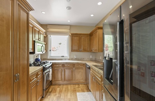 *Full kitchen with gas range, new appliances, stocked with cooking essentials, glassware, and dining utensils. Plus Keurig, pots, pans, etc.