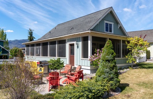 Step into 50's nostalgia at FIrerock Hideout! Our 3-BR cottage is well stocked for a comfortable stay and also offers a large sunny veranda for alfresco dining. Enjoy the mile-long sandy beach, a community vibey pool/hot tub, and vast greenspace. BBQ, hike trails, and play pickleball out your front door. With a diner, EV charger, fitness center, and marina, this 50s-themed retreat has it all. Lake Osoyoos is the PNW's warmest lake. Vintage charm and lounging comfort await your lakeside getaway!