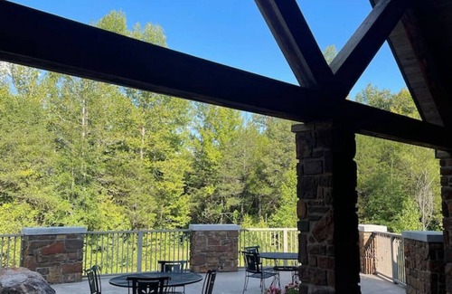 Your experience at Fireside Lodge will be nothing short of extraordinary, thanks to its impressive amenities. Gather around the double-sided stone fireplace on the expansive patio, perfect for dining al fresco for more than 50 guests. The lodge features a large central gathering area adorned with spectacular wooden beams that add warmth and charm, accommodating indoor dining for over 70 guests. For culinary enthusiasts, the oversized fully stocked kitchen boasts two gas range stoves and all essential cooking amenities, ensuring you can entertain your loved ones effortlessly. Explore the scenic trails leading to the private lake and waterfall, where you can immerse yourself in the stunning flora and fauna that surround you.
