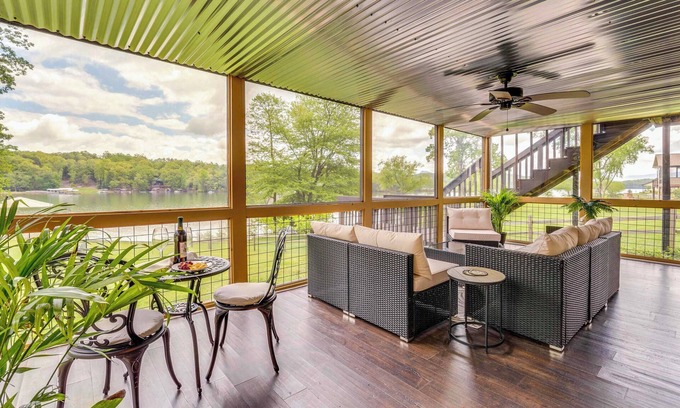 Make memories at this beautiful vacation rental on Lake Chatuge in Hayesville. With a private boat dock, hot tub, and pool table, the property has something for everyone to enjoy. Spend summer days on the water, enjoy crisp fall evenings by the fire, or cozy up for winter game nights. The 4-bedroom, 5-bath home, just minutes from downtown, is a true home for all seasons. Book 'Villa di Lago' today!