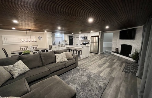 Plenty of room for outdoor activities. 2 Spacious decks for family gatherings and lounging in the sun. Lakefront fire pit, yard games, outdoor cooking and dining space and dock for your boat and fishing.