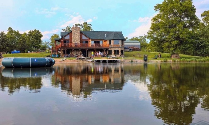 Equipped with three beautifully appointed bedrooms and four bathrooms, Fischer's Secret Cabin can comfortably host up to 15 guests, perfect for your bridal party or family. Enjoy luxurious amenities such as a large recreation room with a wet bar, a commercial theatre system for evening entertainment, and two cozy fireplaces for intimate gatherings. Outside, bask in the tranquility of your own private swimming lake ideal for kayaking, paddle boarding, and nature watching. Enjoy bonfires under the stars or refreshing outdoor showers after a day by the water, ensuring that every moment spent here feels like a mini-vacation.