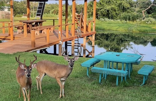 Fisherman's Haven! Rustic and Cozy Cabin has all the conveniences of home and is nestled on an acre with private pond, where deer roam plentiful. Relax or enjoy the great outdoors. Located at entrance to Birch Creek State Park at Lake Somerville. Minutes away from College Station, Brenham and Caldwell, Texas.