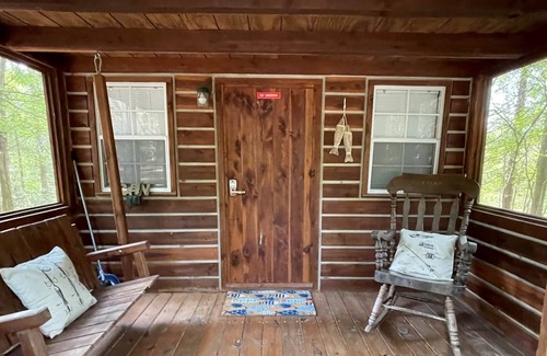 For the angler at heart this rustic cabin has a fish theme. Relax deep in the woods in a private backwoods setting while the crackling of logs fill theair with the smell of thecampfire!Take time to yourself as you enjoy your morning coffee on the benchswing located on your screened in porch! Fish Upon A Star is the perfect little getaway in the woods!