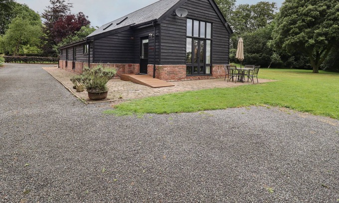 This semi-detached timber-framed lodge near Saffron Walden sleeps four people in three bedrooms.