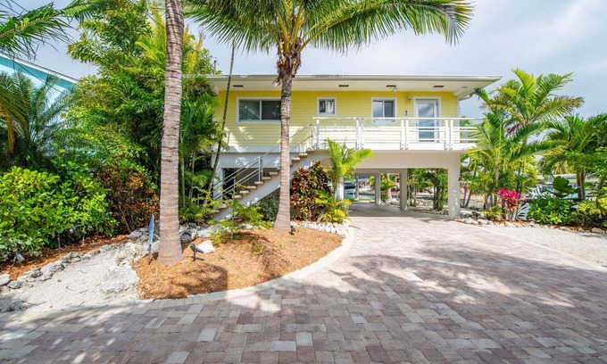 The location and tropical landscaping provides privacy and calmness for your vacation on Summerland Key. Accommodates up to 4 guests with 2 bedrooms and 2 bathrooms. The kitchen includes stainless steel appliances. There are multiple areas for dining: kitchen bar serves as inside dining area, upstairs deck is beautifully appointed with spa located off of the Primary Suite and table for 6, the downstairs dining is located along the canal.