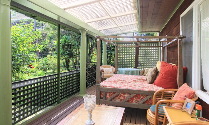 The Fisher's Hana Hale is located across the street from Hana Bay and Waikoloa Beach. We are within walking distance of Hana Bay, Hana town, and Travasa Hotel. Just a short distance down the road is Waianapanapa State Park, Koki and Hamoa beaches. The downstairs features one bedroom and one bathroom, kitchen, living area, screened in lanai with queen bali bed, limited wireless Internet and a Smart TV. For larger parties you can add the upstairs which has one bedroom and one bathroom, living room area, full kitchen and a screened in lanai with a ping pong table. Remember Hana is a rural tropical rainforest so there are insects and rain. But those are the things that make Hana so unique and beautiful. If you need extra space you can also add the upstairs area, please inquire.