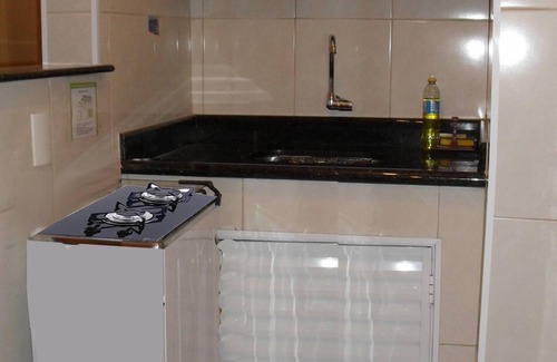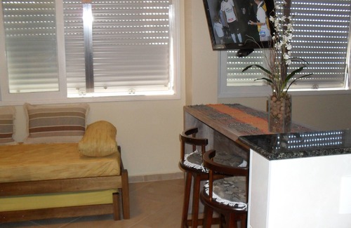 Fit 1 bedroom facing the beach with panoramic views of Embaré Beach (channel 4), Wi-Fi, 32 "Led TV with NET cable, double bed in the bedroom, bunk bed in the room, accommodates up to 4 people, ceiling fans and living room, kitchen with 2-burner cook-top, refrigerator and microwave, collective garage for 40 cars with the right to park 1 car if space is available. Close to Shopping Praiamar (channel 5), in the surroundings there are dozens of bars and restaurants among them: Subway, Pizza-Hut, Mc Donalds, Rest. Japanese Nagoya, Churrascaria Monte Carlo, Cantina Bella Bambina, Pizzaria Passarela, Rest. Mexicano D´Boa, Rest. Fish and Seafood: Vista ao Mar, Bar do Toninho (King of codfish cake). Bakery and pharmacy are behind the building, Pão de Açúcar supermarket on the side of the building.