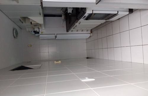 The apartment is very ventilated, with a balcony and ample spaces (65 m2 floor area). The dining room is furnished with wooden table and transparent round glass top, two pictures on the wall, with four wooden and metal chairs upholstered in light fabric. The living room has a sofa lined in light material for four people, with two longitudinal glass shelves along the wall, one equipped with a TV. The balcony has a net guard and is closed with tinted windows. The double bedroom, in front of the bathroom, has a double bed, built-in wardrobe with three compartments, a bench for installing a TV and an air conditioning unit. The single room with a box bed and a closet with three compartments. The bathroom has a sink, mirror, cupboards under and over the sink, glass shower, toilet with hygienic shower, electric shower. The kitchen is very well furnished with cupboards under and over the sink, Brastemp clean fridge with freezer on top, Consul microwave oven, four-burner Brastemp stove and gas oven, blender, cake mixer, orange squeezer and on dispensing area with a washing machine (although the reception may indicate cost-effective laundry services that collect clothes at the condominium reception). Stainless steel cookware, porcelain plates, glasses, cups, bowls and cutlery are available in the kitchen cabinets. Bed linen and towels are usually not offered, but can be arranged if requested in advance, at an additional cost.