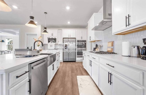 Looking for a comfortable and stylish home for your extended stay? This modern 3-story home has everything you need! With 4 bedrooms, 4.5 bathrooms, and 2 dedicated office spaces, it’s perfect for families, remote workers, or professionals.
