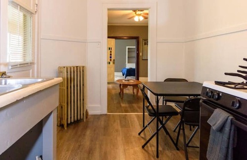 Inside a 100+ year old building, this recently remodeled 2 bedroom/1 bath apartment has its own entrance, living room, kitchen, and bathroom. It's perfect for those traveling professionals or larger groups on a budget looking for a place to stay long term.