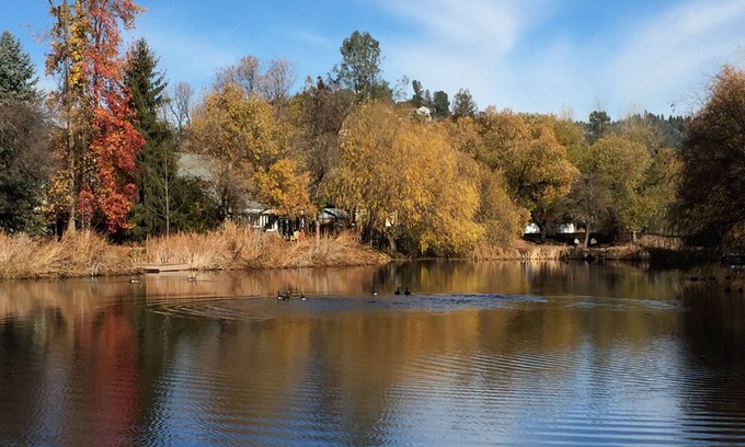 Five bedroom, two full bath, knotty pine cabin on a large private pond with fishing dock and beautiful setting. Close to skiing, lake activities, casino, and Yosemite.