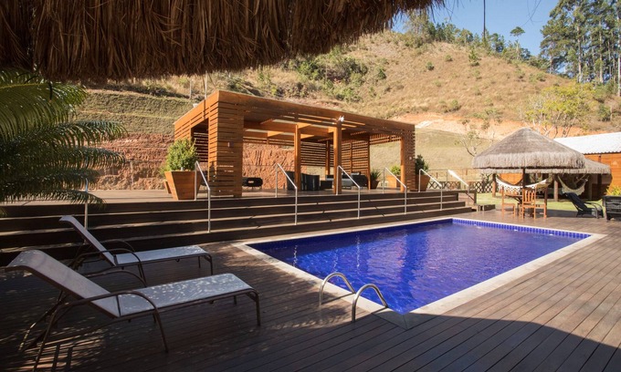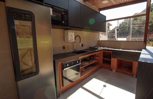 Room with a family atmosphere and cozy for rest. It has complete leisure area, soccer field, playground for children, pula pula, barbecue, wood stove, 2 breweries, 01 pool table, a geek table, chopp machine, kitchen with utensils. The house is duplex with 3 suites, living room with fireplace, kitchen and a garden with beautiful green area, 5 social bathrooms, perfect region for trails.